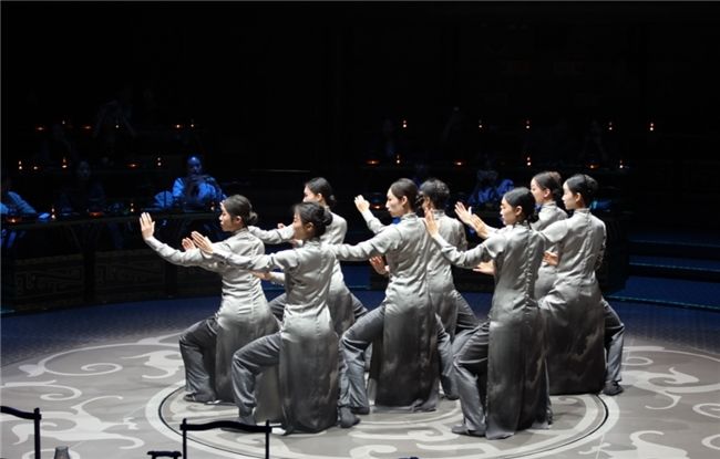 更令人拍案叫绝的是,这里的每一道菜都是舞台表演的 “剧本”。当演员们身着锦绣华服 ,在光影交织的纱幕间重现 “胡服骑射” 的豪迈、“完璧归赵” 的惊险 时,餐桌上的佳肴竟与剧情遥相呼应:随着蔺相如 “持璧而立”,餐盘里的 “琥珀炆玉环” 也泛起温润光晕;而当舞者在《刚柔并济》的乐声中 ,以太极招式舒展身姿,黑白交织的绸缎如阴阳鱼流转,餐盘里太极八卦造型的龟苓膏 ,表层黑亮的焦糖纹路与乳白椰奶泾渭分明 。不少食客感叹:“这哪是吃饭?分明是参演了一场穿越剧!”