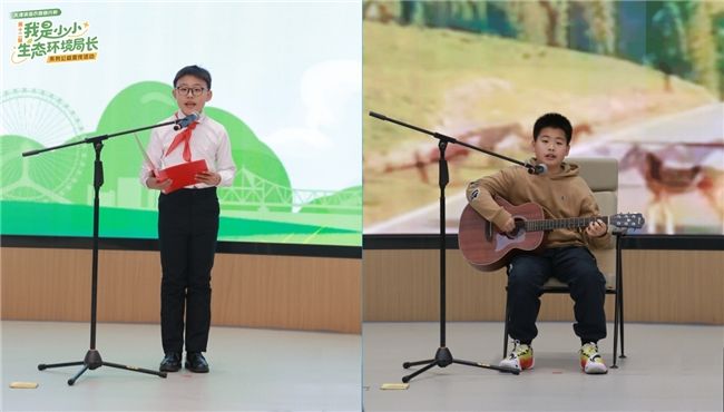 文艺表演环节同样精彩纷呈。第十一届“小小生态环境局长”代表赵悦安以一曲《平凡之路》吉他弹唱,传递出环保路上坚守初心的力量;天津南开日新学校任曦彤带来的诗朗诵《绿色 最美丽的颜色》,深情表达了对绿色家园的礼赞与向往 。